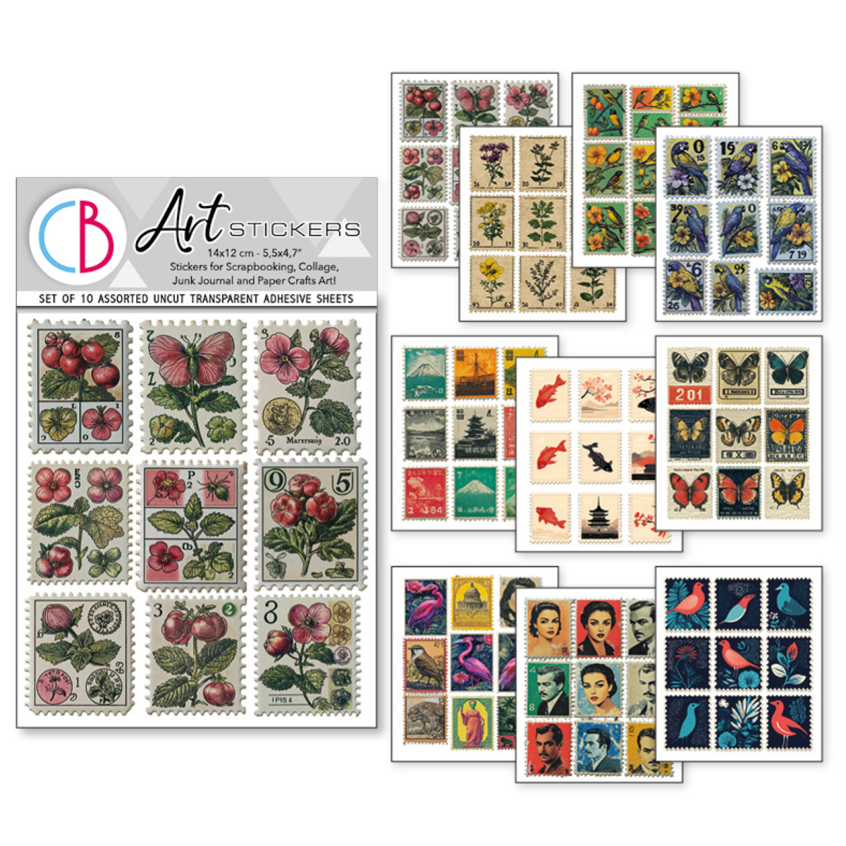 | Description: | Art Stickers: uncut full transparent adhesive sheets for junk journal, collage, scrapbooking, card making and paper crafts art! Size 5,5"x4,7"- cm 14x12 Set of 10 assorted uncut transparent adhesive sheets. Soft-touch Acid and Lignin Free Made in Italy by Ciao Bella Tipografia Alzani |