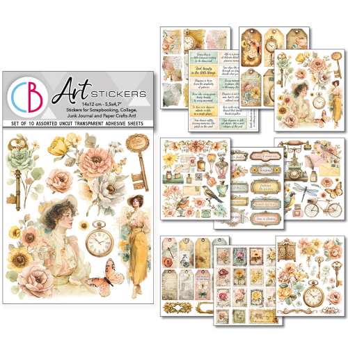 | Description: | Art Stickers: uncut full transparent adhesive sheets for junk journal, collage, scrapbooking, card making and paper crafts art! Size 5,5"x4,7"- cm 14x12 Set of 10 assorted uncut transparent adhesive sheets. Soft-touch Acid and Lignin Free Made in Italy by Ciao Bella Tipografia Alzani |