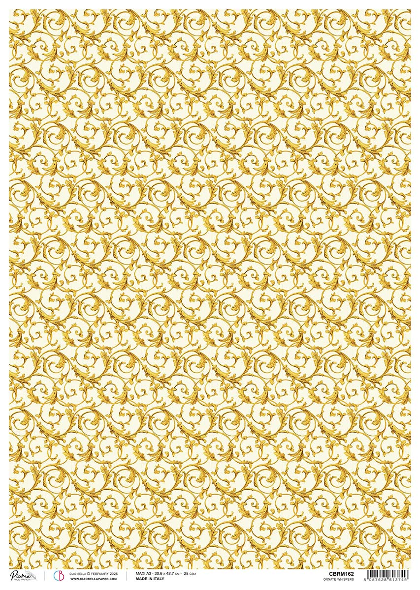 Piuma is the line of textured rice paper by Ciao Bella. The printing technique makes it a unique product for design and quality. Ideal for decoupage, mixed media art and crafts projects. Size Maxi A3, 12x16.8 inches (30.6cm x 42.7cm)
