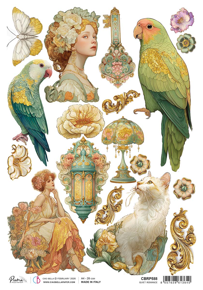 Piuma is the line of textured rice paper by Ciao Bella. The printing technique makes it a unique product for design and quality. Ideal for decoupage, mixed media art and crafts projects. Size A4, 8 1/4x11 3/4 inches (21cm x 29.7cm)